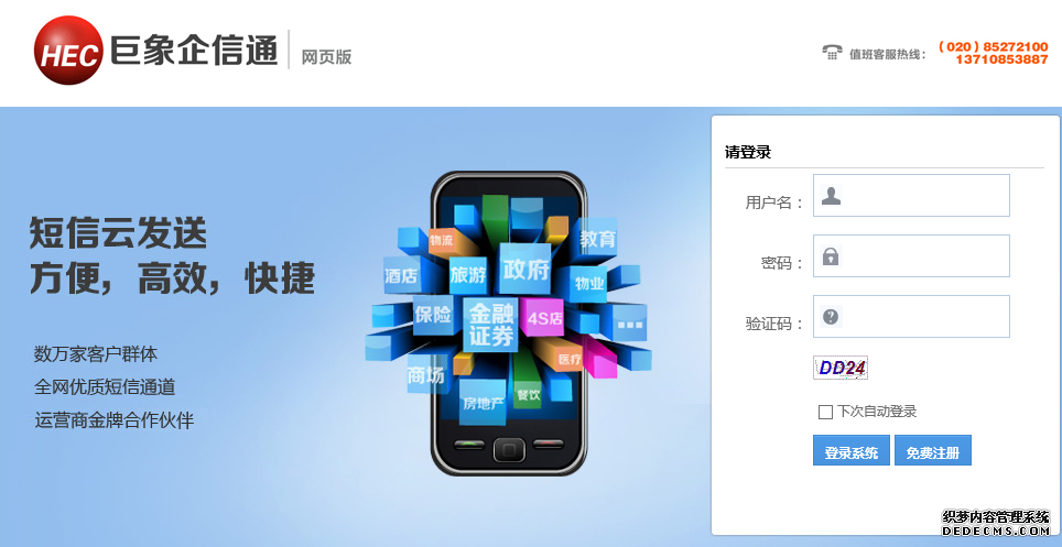 短信群發(fā),彩信群發(fā),短信群發(fā)軟件,廣州巨象計算機科技發(fā)展有限公司是一家致力于為企業(yè)提供互聯(lián)網(wǎng)、通訊技術(shù)應(yīng)用服務(wù)和解決方案的高科技公司,具有良好的國內(nèi)外資金和技術(shù)背景;是國內(nèi)最早投入研發(fā)企業(yè)短信應(yīng)用和企業(yè)網(wǎng)絡(luò)電視臺系統(tǒng)的公司之一,業(yè)已成為廣東地區(qū)最大的移動商務(wù)產(chǎn)品與解決方案的提供商和優(yōu)秀的電訊服務(wù)品牌企業(yè)。其主要業(yè)務(wù)有: